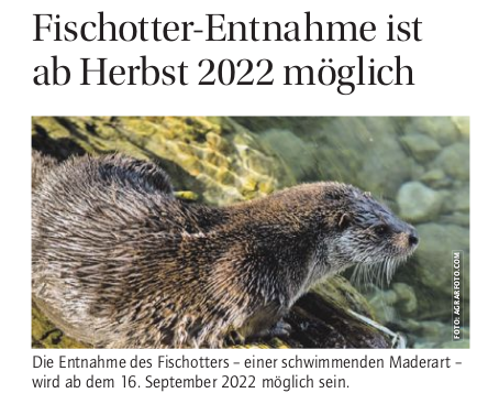 • Fischotterbejagung ab Herbst 202227. Juni 2022